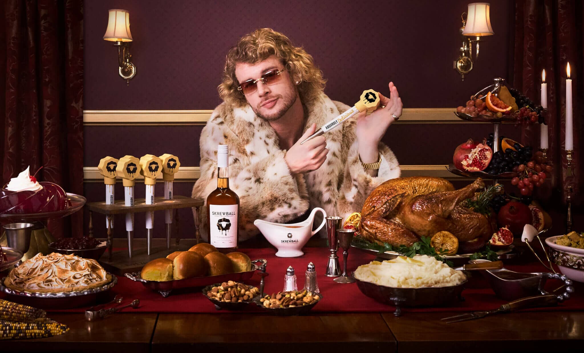 Skrewball partnered with internet-favorite rapper-turned-country-star Yung Gravy, the self-declared “Gravy King,” to co-create a limited-edition Skrewball Baster Set. Together, Skrewball and Yung Gravy invited Americans to Give Thanks and Get Basted by adding nutty mischief to their family’s usual quiet and wholesome Thanksgiving traditions. Enter the Baster Set, which came complete with seven basters, a holder, and a gravy boat—designed not for stuffing turkeys, but for slinging Skrewball shots across the dinner table.